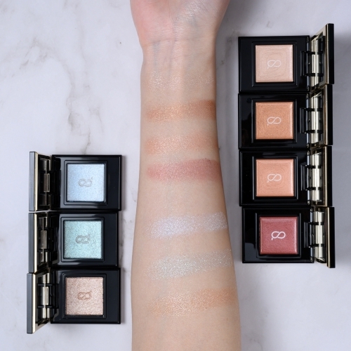 若想尋找最特別的收藏,則非 08 透眺 莫屬。這款色號雖然看起來顏色偏淡,卻最能精確詮釋 SUQQU「與其遮蓋,不如融合修飾膚色」的妝感美學。透過左側珊瑚色與右側藍色系打亮的巧妙結合,無論是暖膚色還是冷膚色,都能在修飾膚色的同時,散發出極致清透且高雅的光澤。