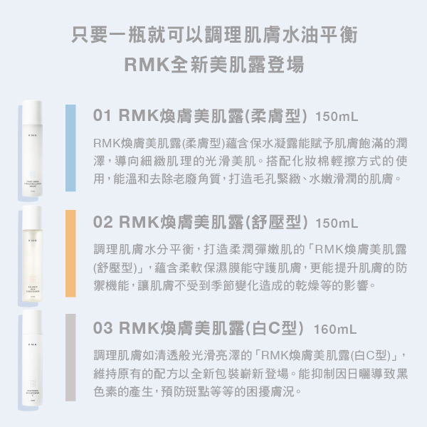 商品名稱:【黑五養肌↘3折】RMK 煥膚美肌露 150mL (柔膚型|效期2026.06)
