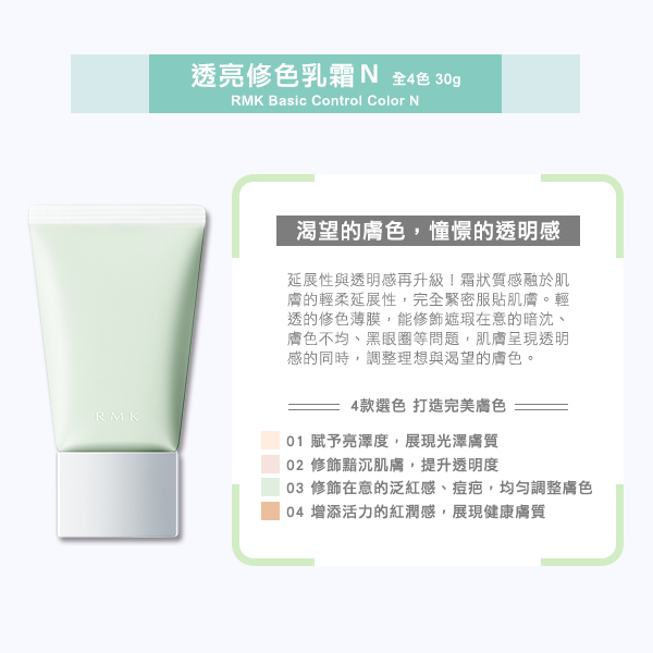 商品名稱:RMK 透亮修色乳霜N 30g (4色任選)