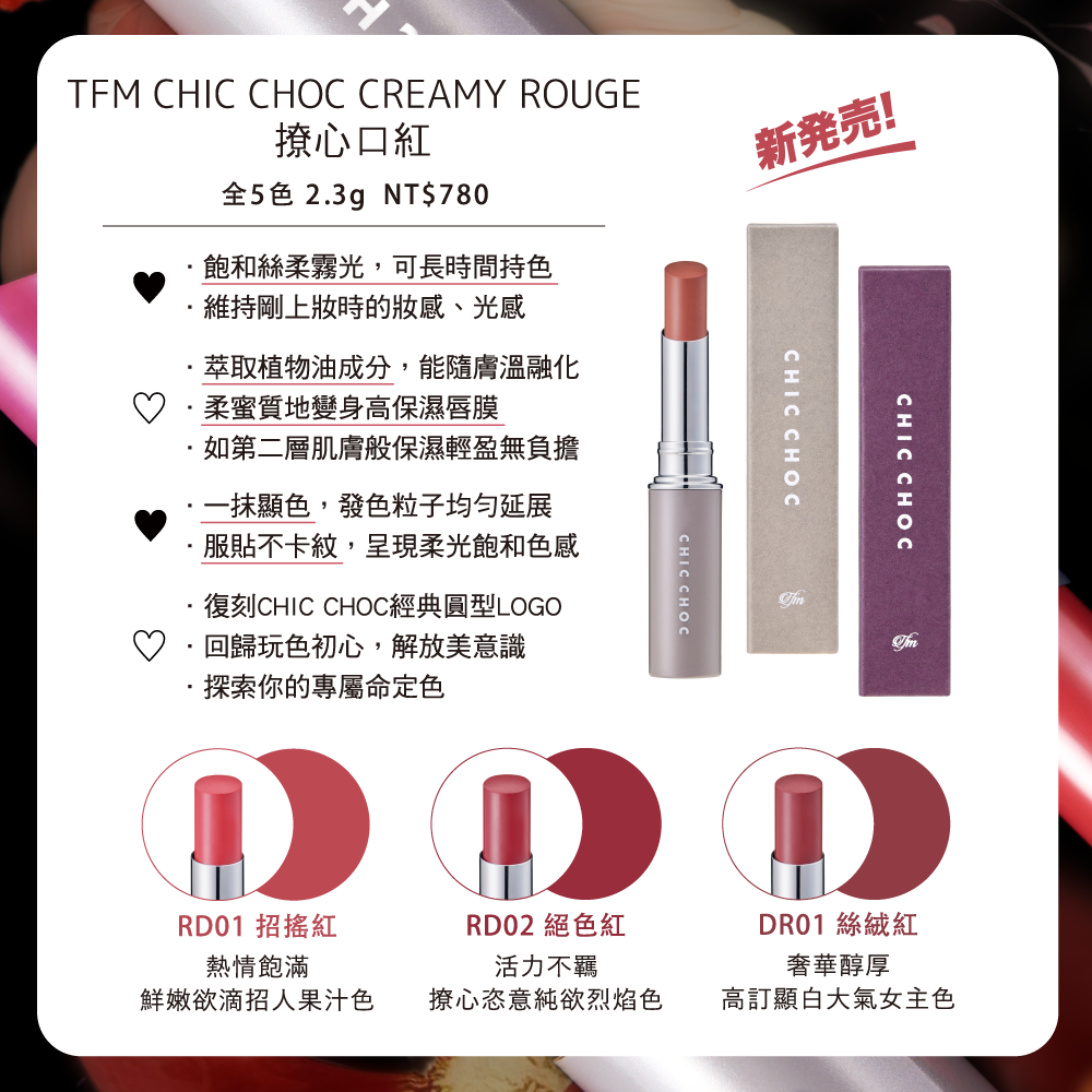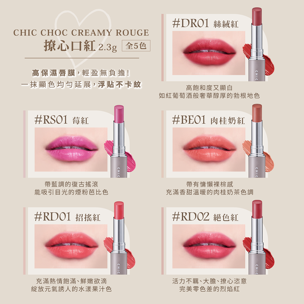 1. CHIC CHOC 撩心口紅 2.3g (7色任選) X1