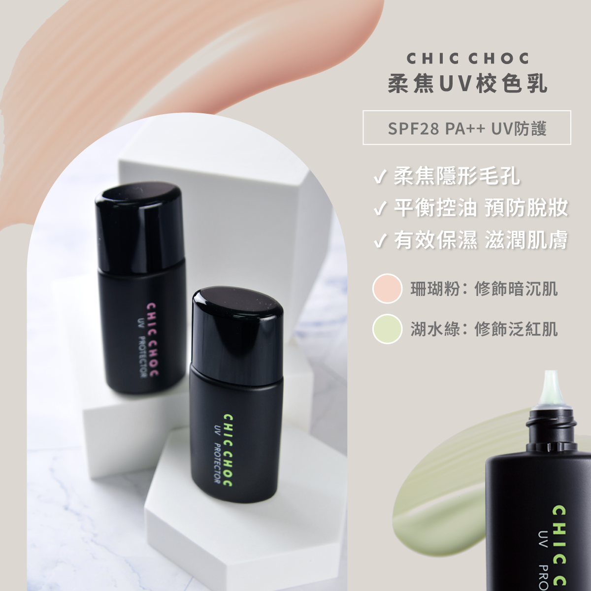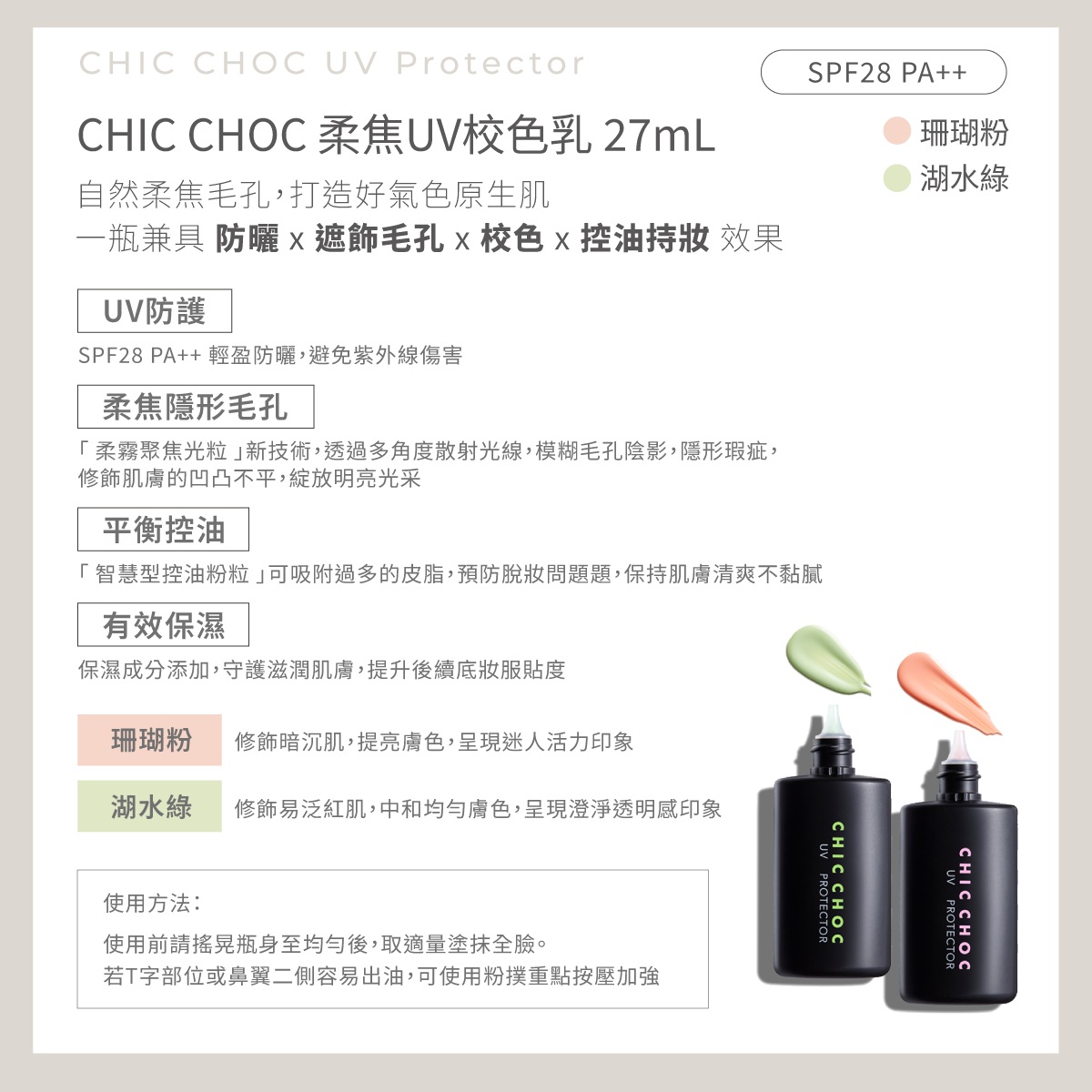 1. CHIC CHOC 柔焦UV校色乳 27mL (2色任選) X1