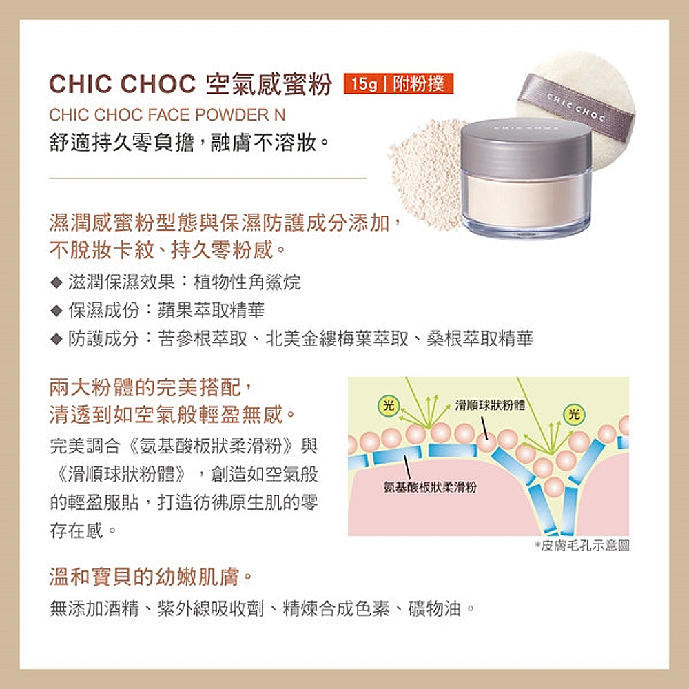 1. CHIC CHOC 空氣感蜜粉 15g X1