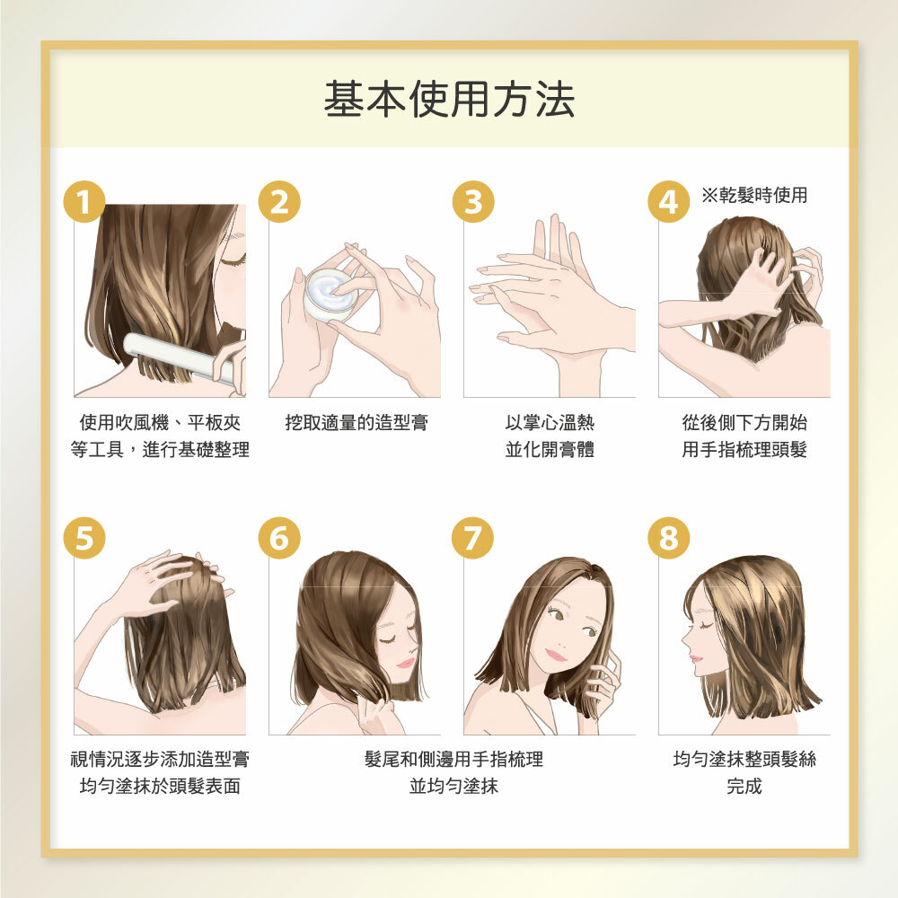 ◆簡易使用:輕盈質地使得產品易於塗抹,且不留白殘留,適合所有髮型和顏色。