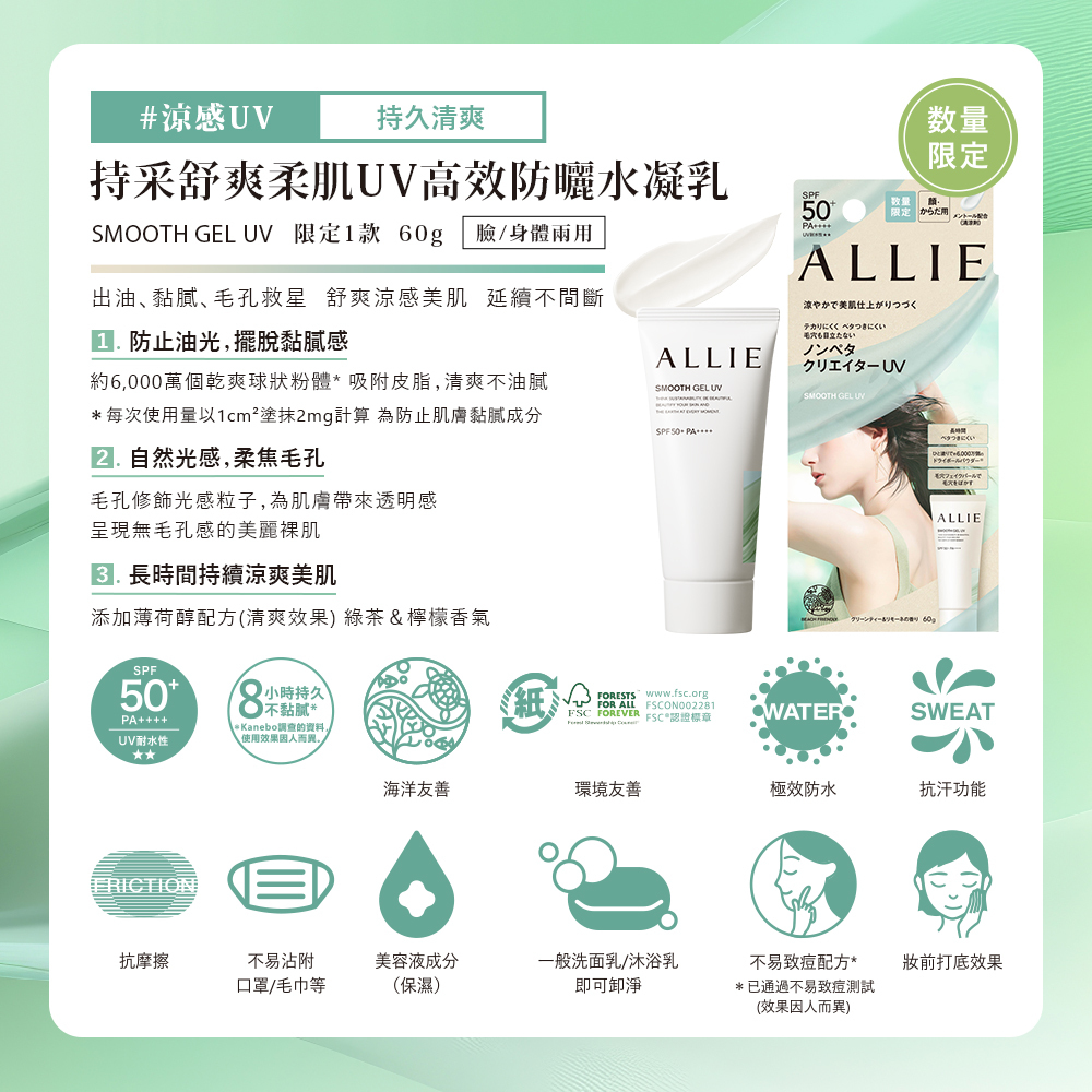 商品名稱:Kanebo 佳麗寶 ALLIE 持采舒爽柔肌UV高效防曬水凝乳 60g