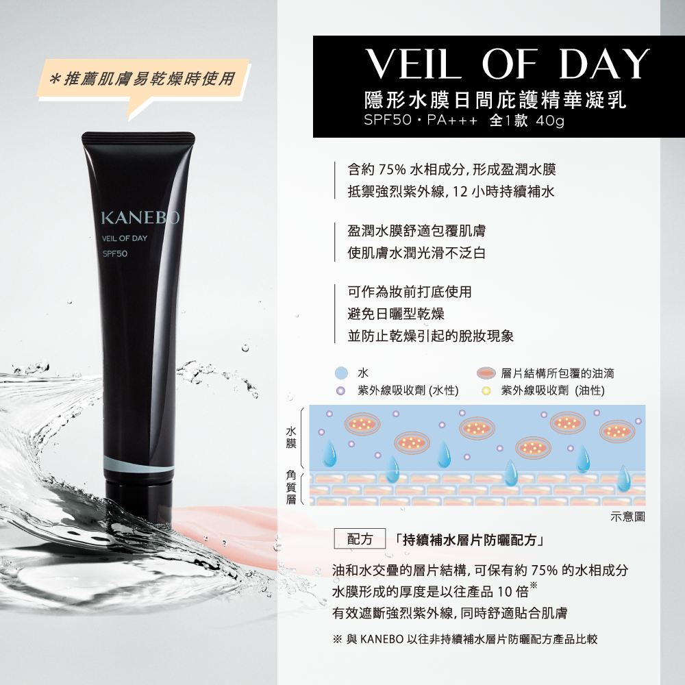 1. KANEBO 隱形水膜日間庇護精華凝乳12G