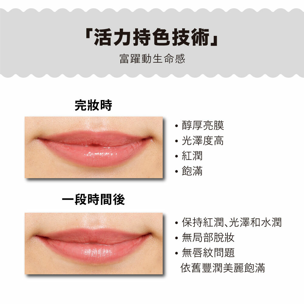 ◆唇色紅潤持久,襯映膚色,洋溢生命感
