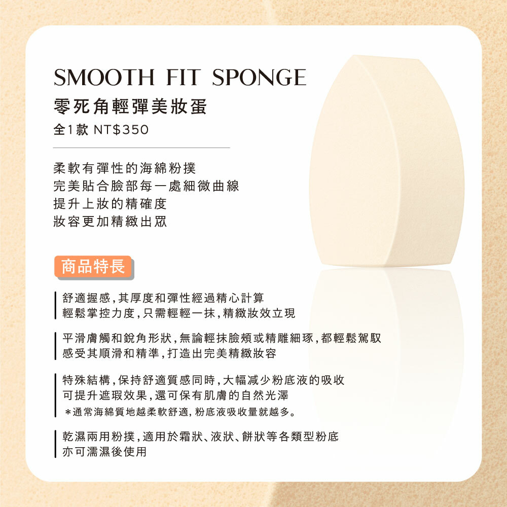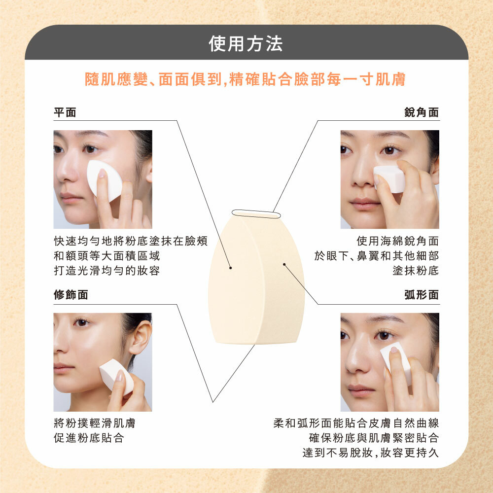 ◆ 精心計算的厚度、彈性、棱角形狀,輕鬆打造精緻妝容