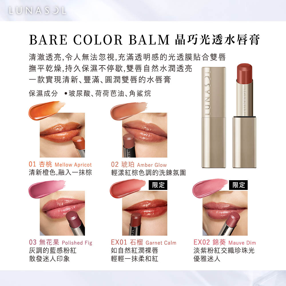 商品名稱:Kanebo 佳麗寶 LUNASOL 晶巧光透水唇膏 3.5g (5色任選)