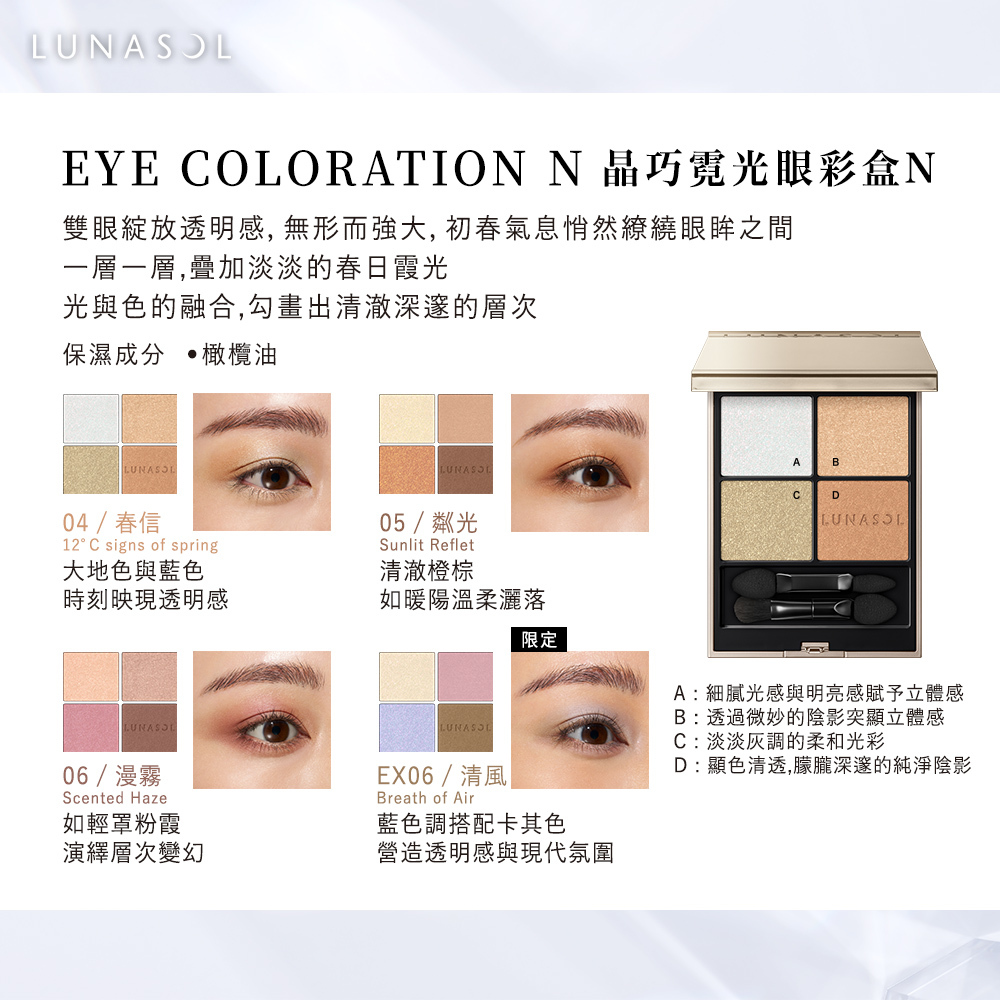 商品名稱:Kanebo 佳麗寶 LUNASOL 晶巧霓光眼彩盒N 7.0g (四色任選)