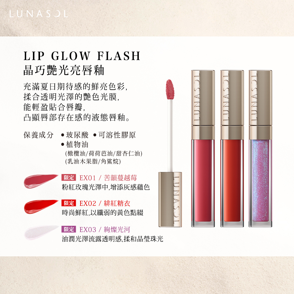商品名稱:Kanebo 佳麗寶 LUNASOL 晶巧艷光亮唇釉 6.3g(3色任選)