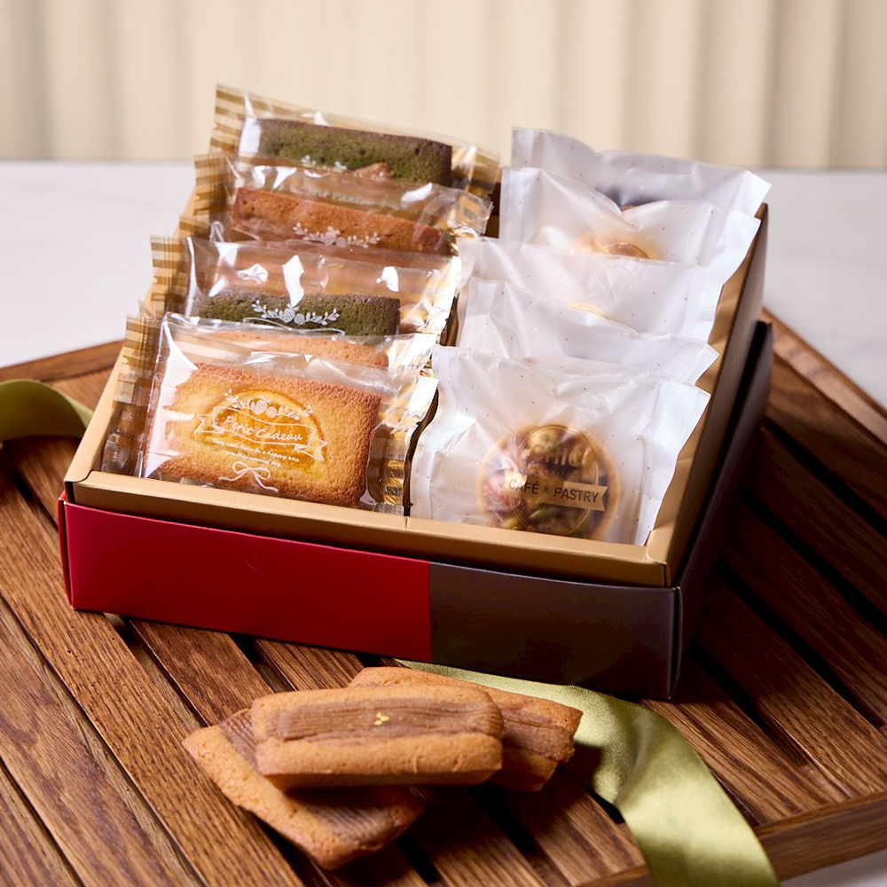 ◆柳橙金磚 x 2 + 栗子金磚 x 2 + 抹茶金磚 x 2 + 夏威夷果塔 x 2+ 綜合堅果塔 x 2+ 海鹽巧克力夾心 x2
