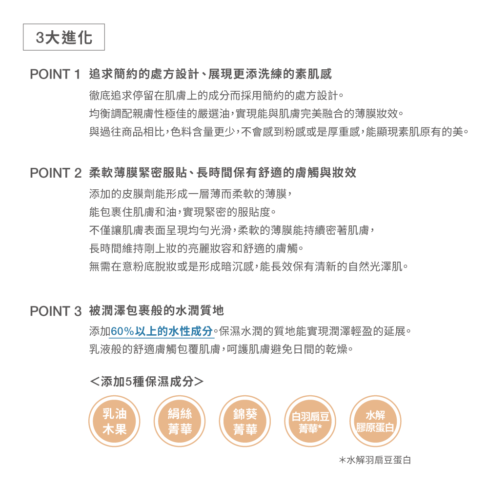 ◆ 襯托肌膚原生之美 展現清透素肌感