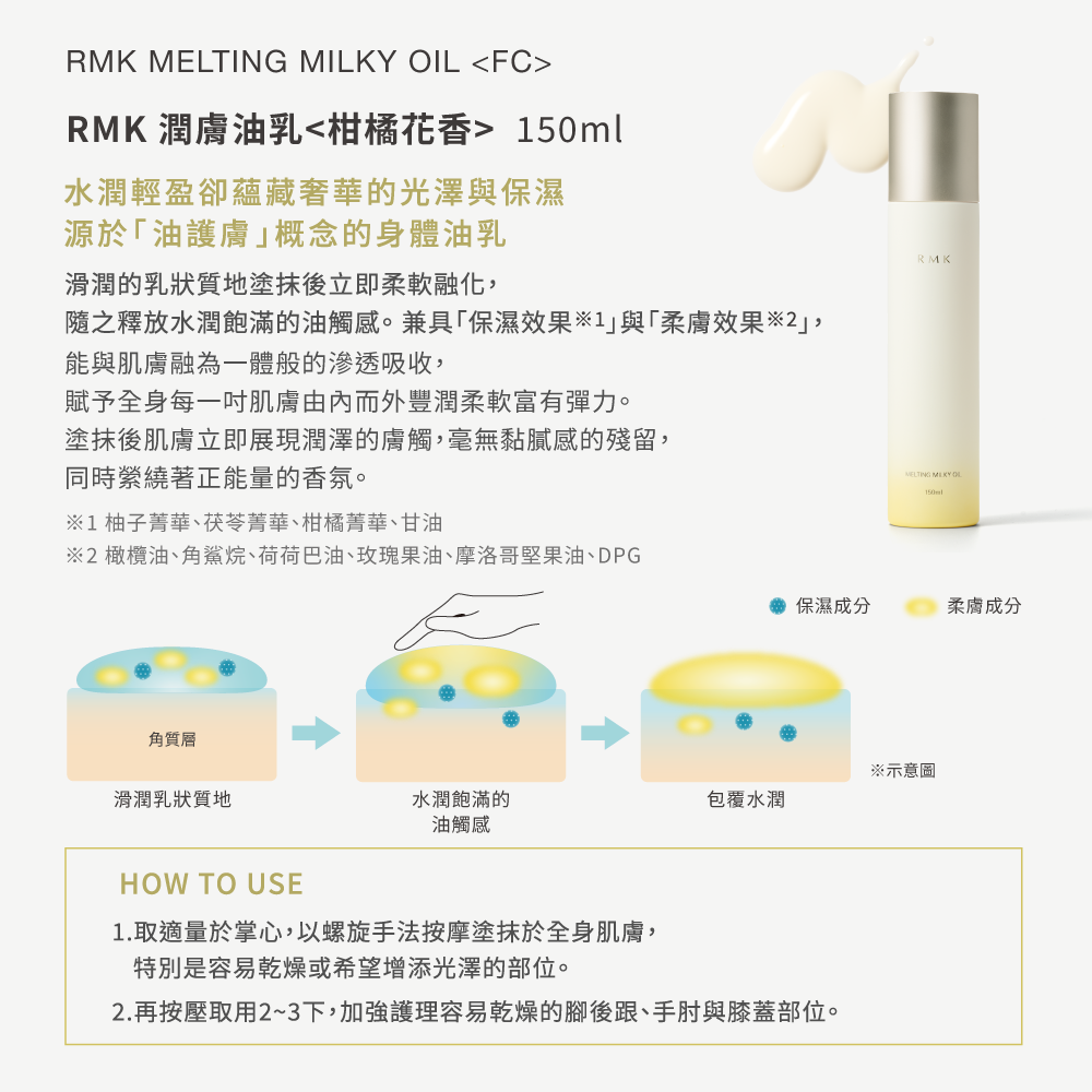 商品名稱:RMK 潤膚油乳 (柑橘花香) 150ml