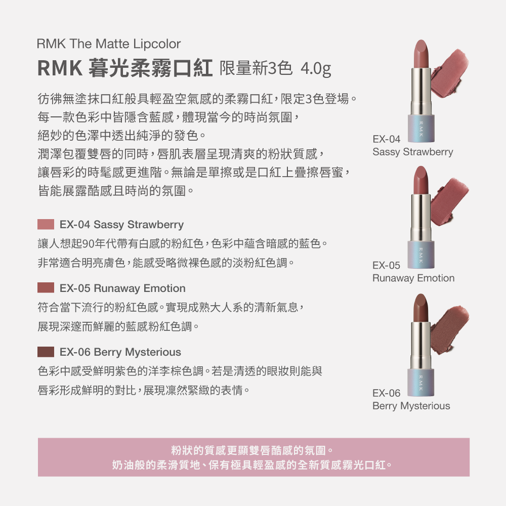 商品名稱:RMK 暮光柔霧口紅 4g (3色任選)