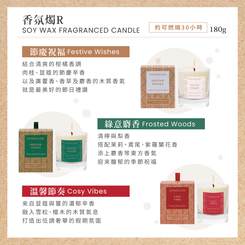 商品名稱:STONEGLOW 香氛燭R 180g (3款任選)