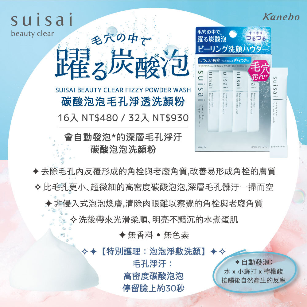 商品名稱:Kanebo 佳麗寶 suisai 碳酸泡泡毛孔淨透洗顏粉 聯名款 SA (32包)