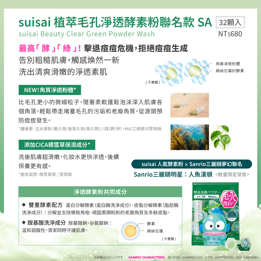商品名稱:Kanebo 佳麗寶 suisai 植萃毛孔淨透酵素粉 聯名款 SA(32顆)