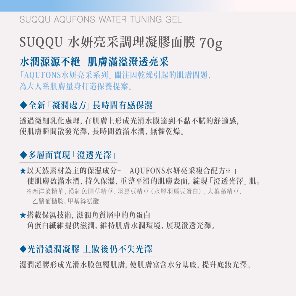 商品名稱:SUQQU 水妍亮采調理凝膠面膜 70g