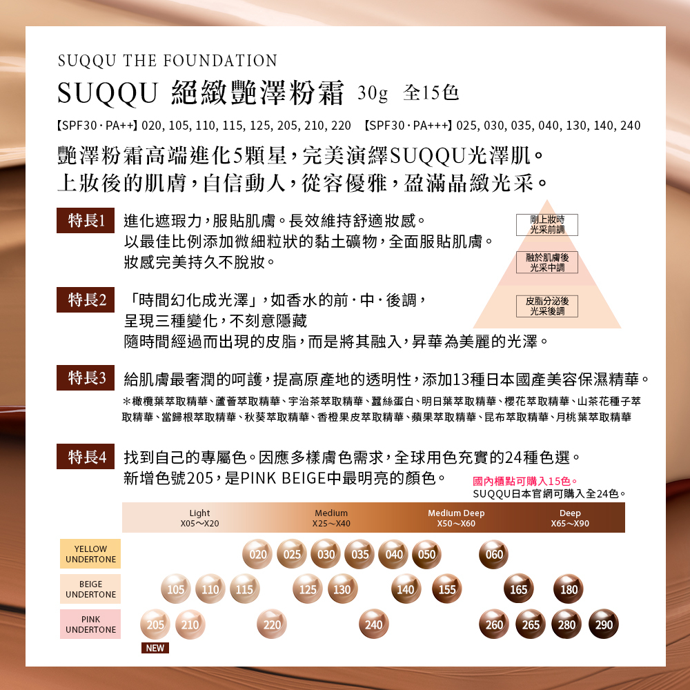 商品名稱:SUQQU 絕緻艷澤粉霜 30g(15色任選)