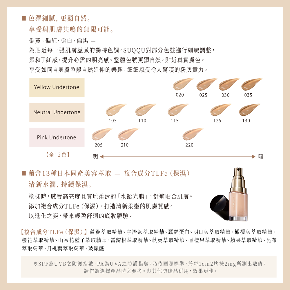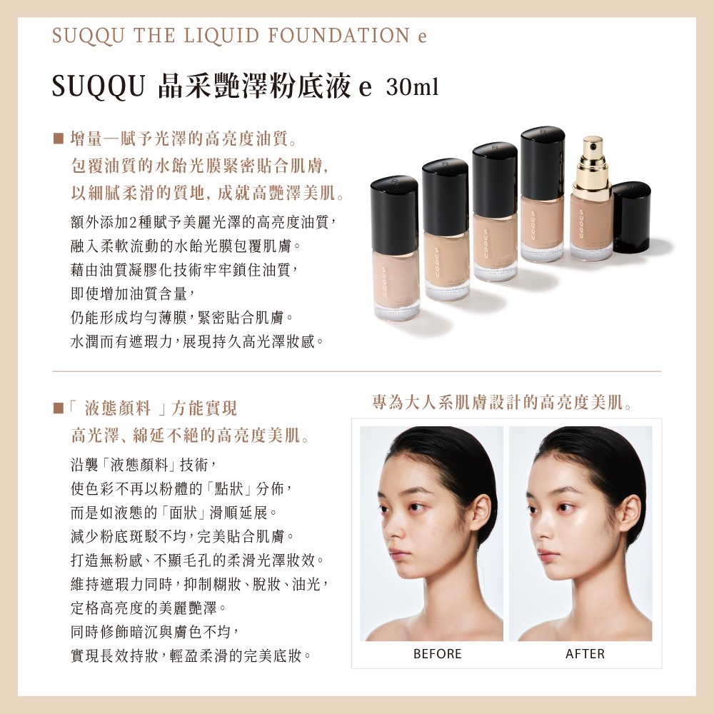 商品名稱:SUQQU 晶采艷澤粉底液 e 30mL(12色任選)