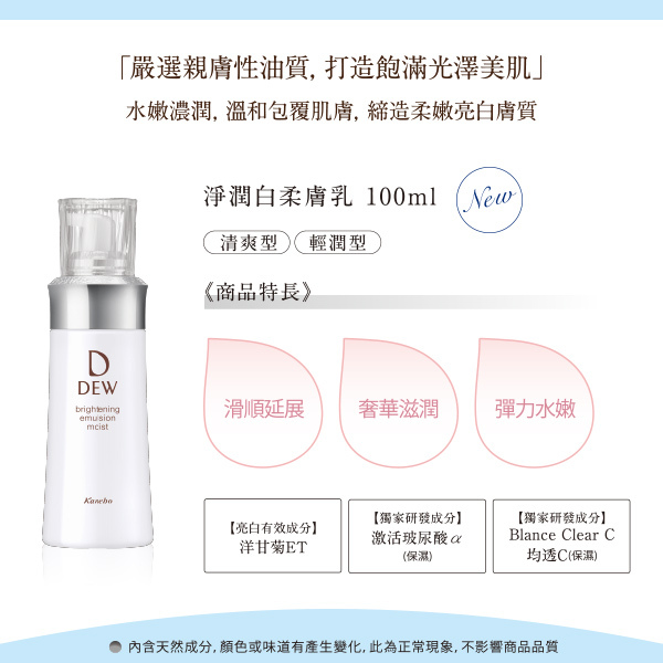 2. DEW 淨潤白柔膚乳 100mL x1 (清爽或輕潤)