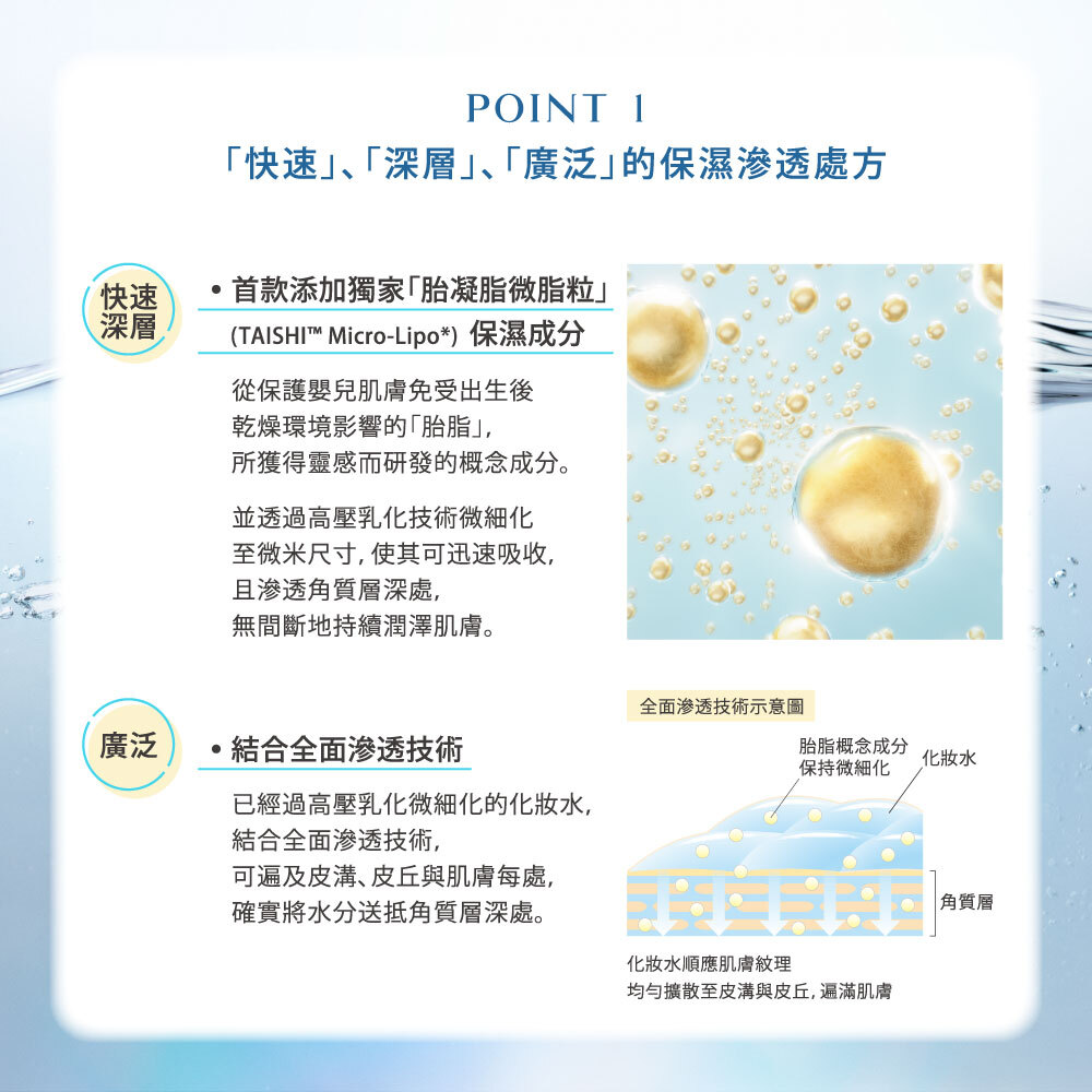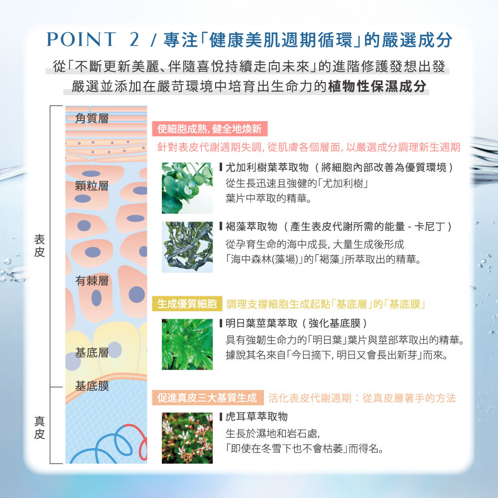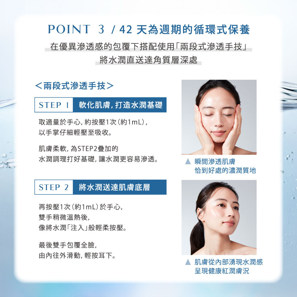 ◆ 獨家技術深層滲透、源源注入,包覆肌膚更水潤