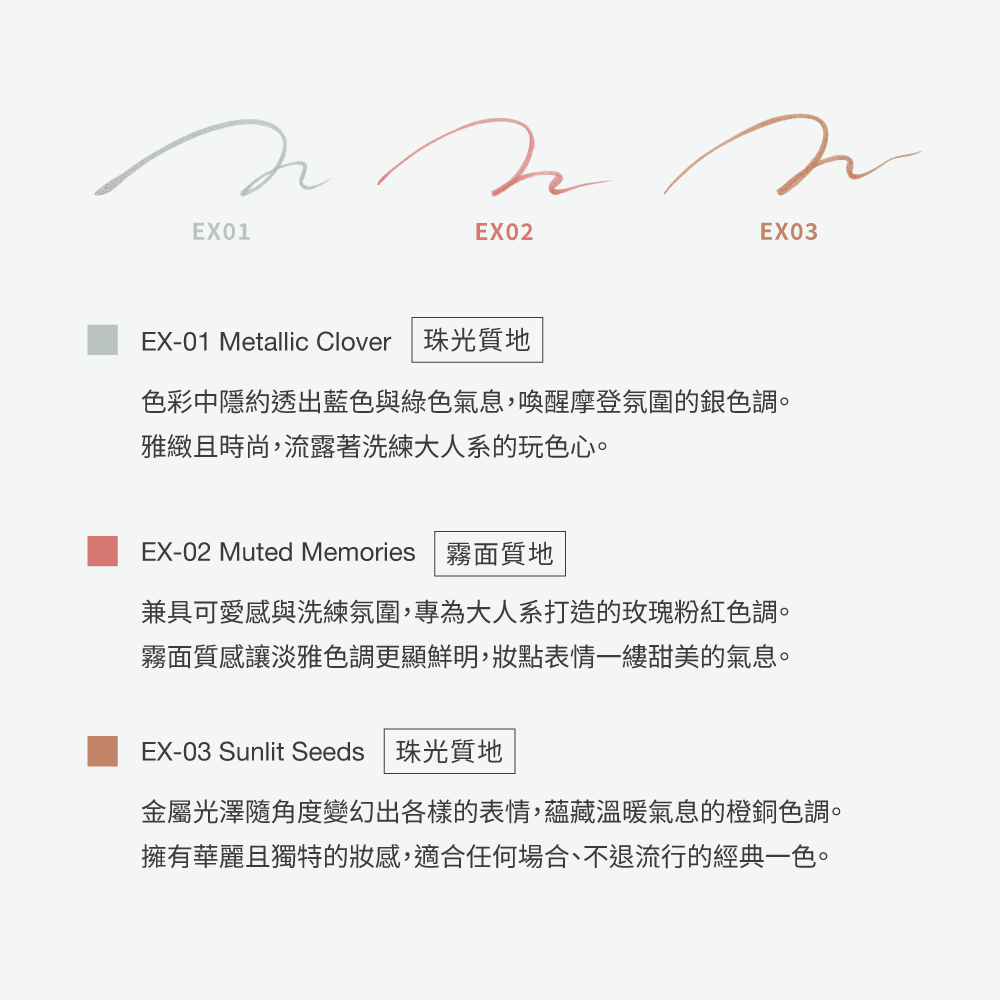 ◆精緻霧光與珠光質感自由切換