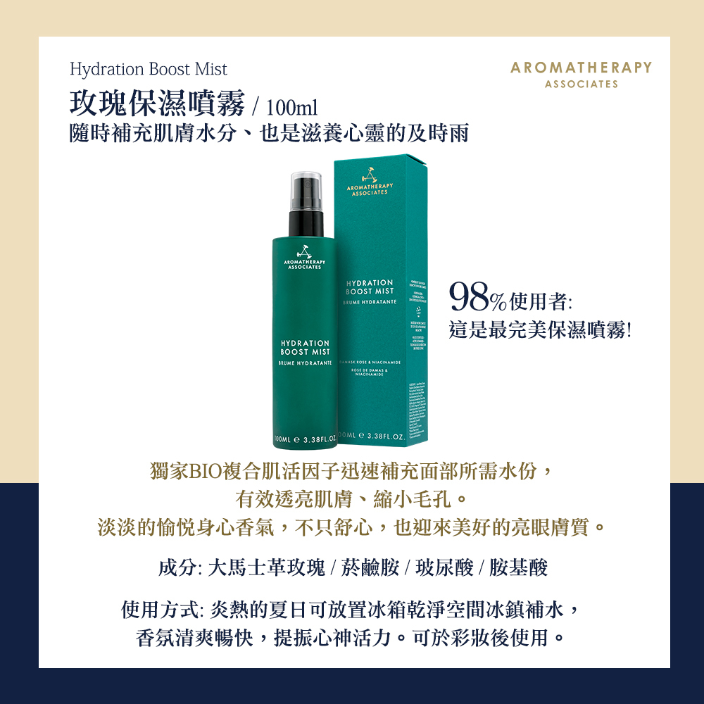 商品名稱:AA 英國皇家芳療 玫瑰保濕噴霧 100mL(AromatherapyAssociates)