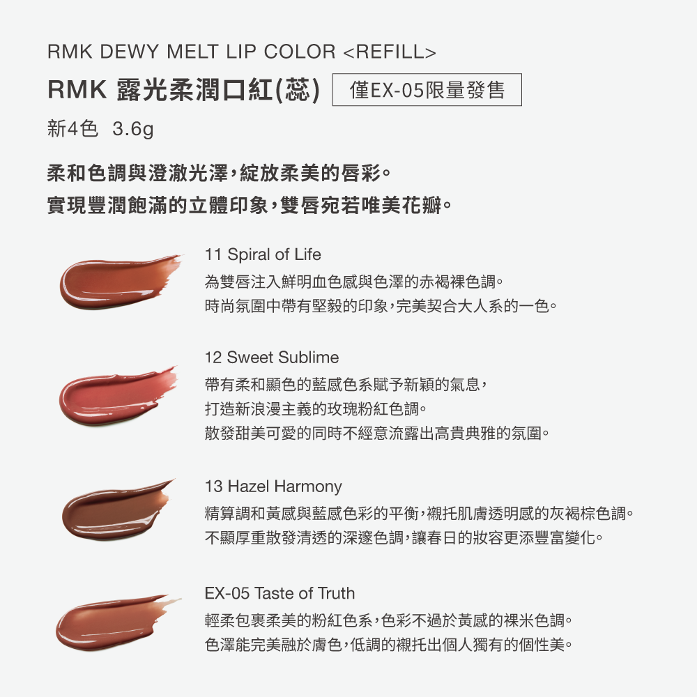 商品名稱:RMK 露光柔潤口紅(蕊) 3.6g(4色任選|不含口紅殼)
