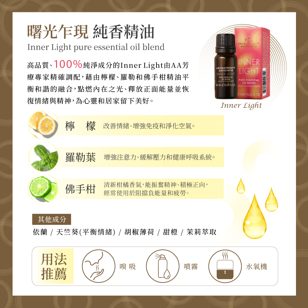 以「永恆承諾」為名,象徵香氣的恆久與心意的延續。AA 英國皇家芳療純香精油嚴選天然植萃,透過冷壓與蒸餾技術完整封存植物精華。無論在家或辦公室,只需輕滴數滴於香薰機中,即可瀰漫自然的芳香氛圍,舒緩身心、喚醒能量。從花草到果實的純淨香氣,讓香氛成為日常的一份溫柔療癒。